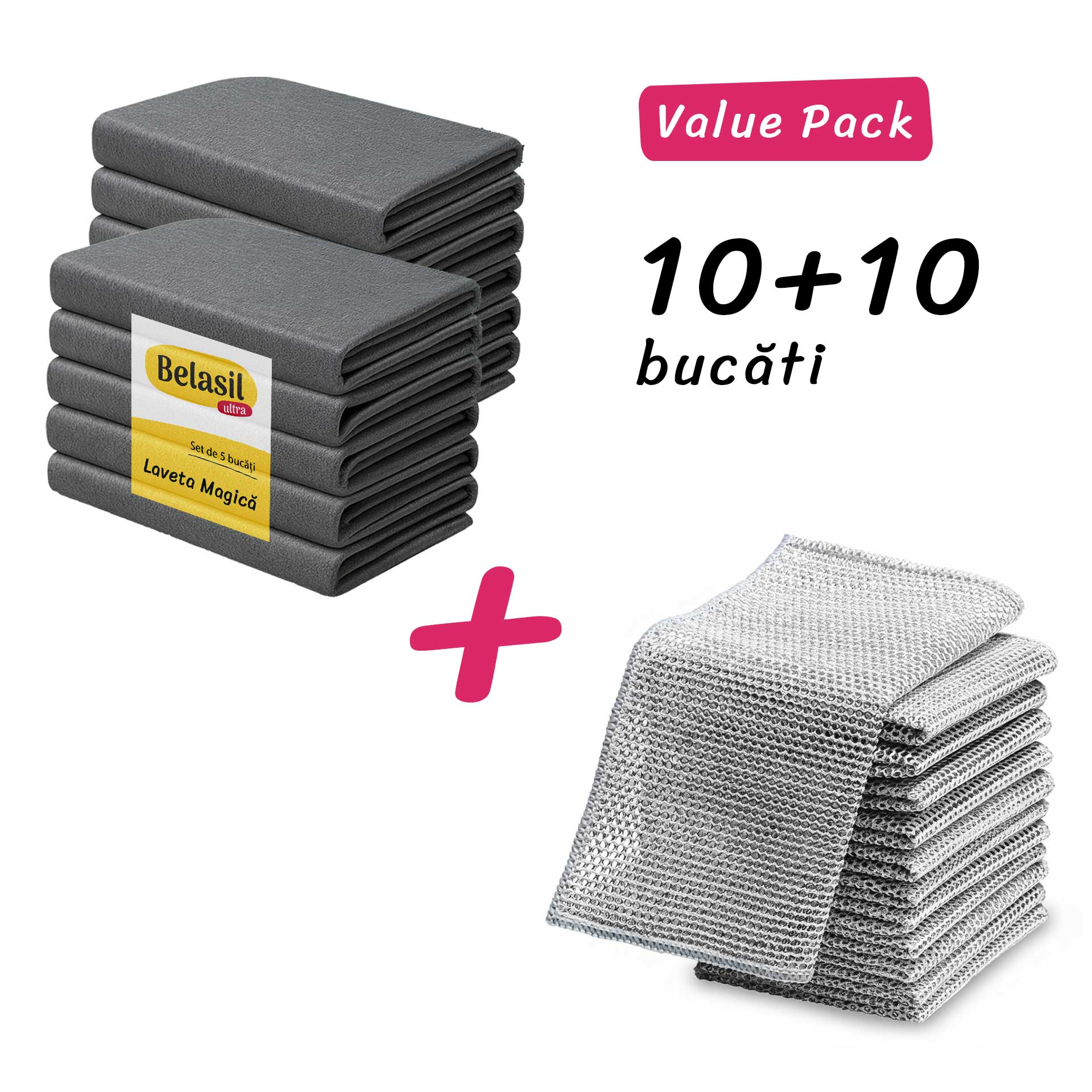 Conținut pachet: 10 lavete (5 microfibră + 5 abrazive). Brand: Belasil Ultra.